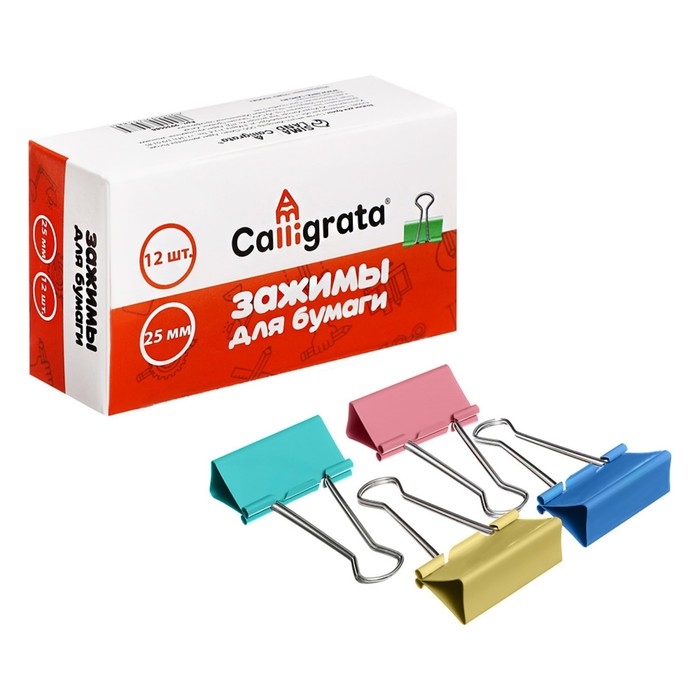 Металлические зажимы для бумаг Calligrata используются для скрепления документов, фотографий без использования степлеров и скрепок, для временной фиксации листов, не повреждая их и надежно удерживая стопку бумаг. Канцелярские зажимы 25 мм из металла. Они являются необходимой офисной принадлежностью, используются в школах и дома