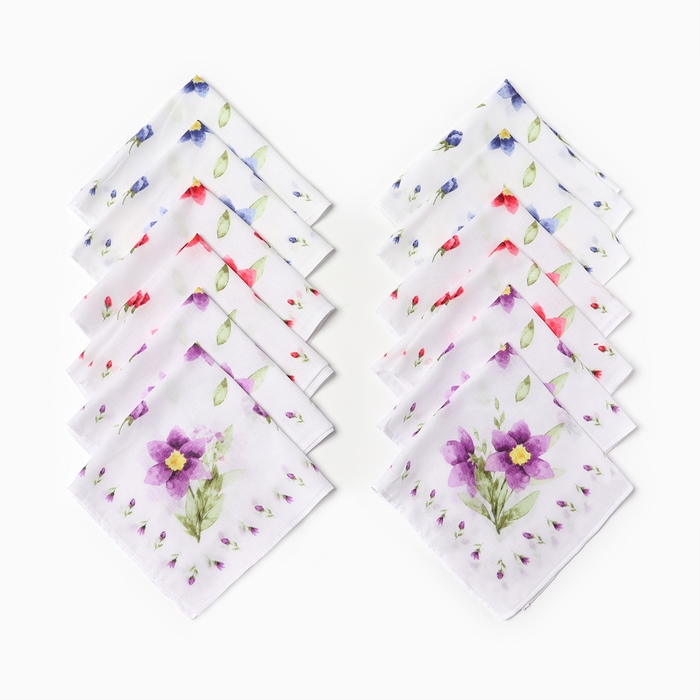 Набор женских носовых платков 45451-3 30х30см 12шт, жаккард сатин 82г/м, хл100%