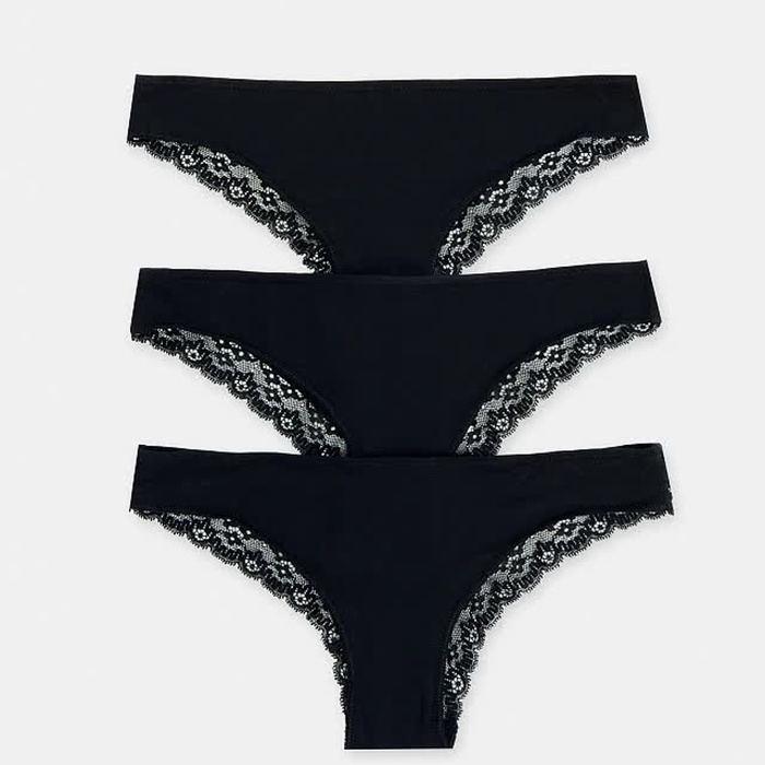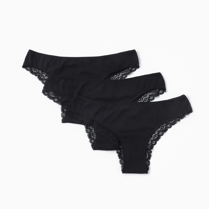 Набор женских трусов бразилиана (3 шт.), цвет черный, размер 46 (M)