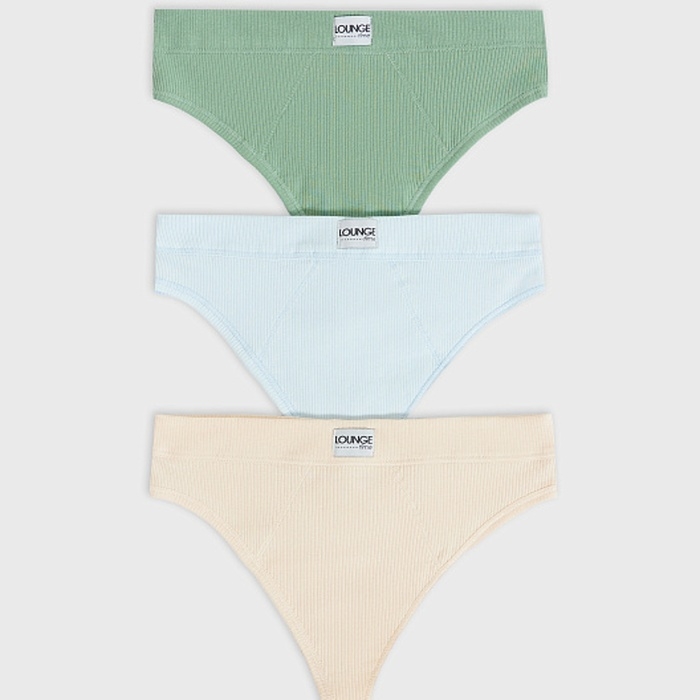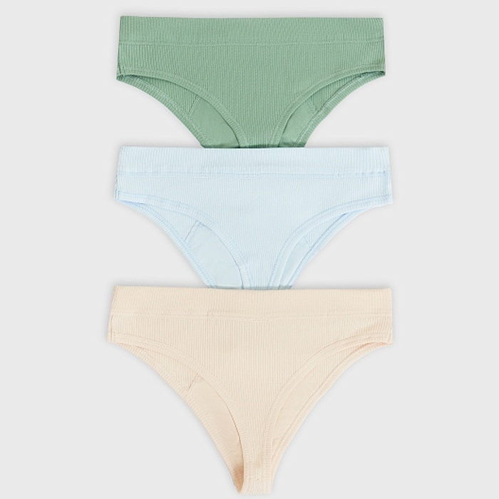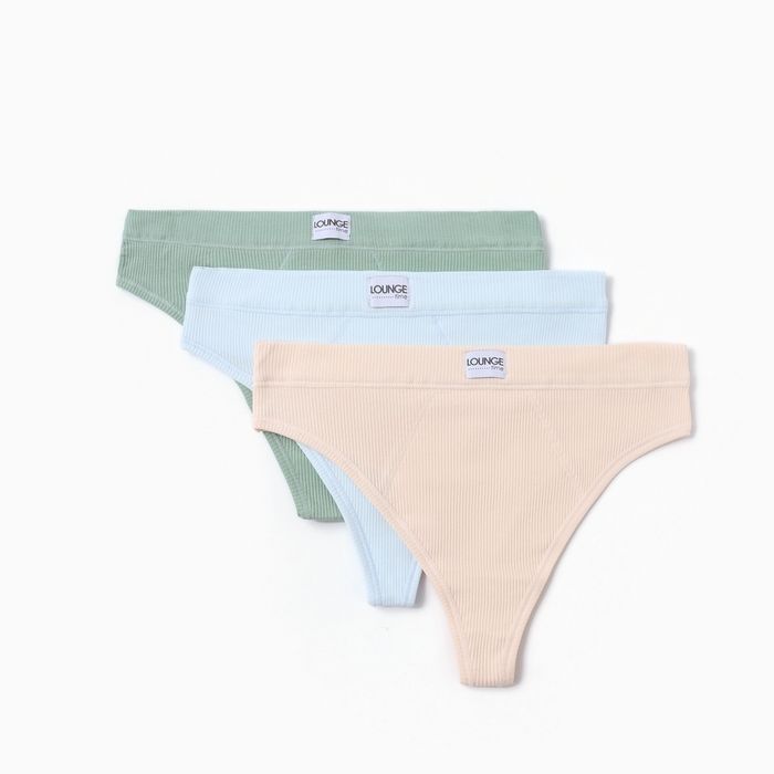 Набор женских трусов бразилиана (3 шт.), цвет зеленый/голубой/бежевый, размер 48 (L)