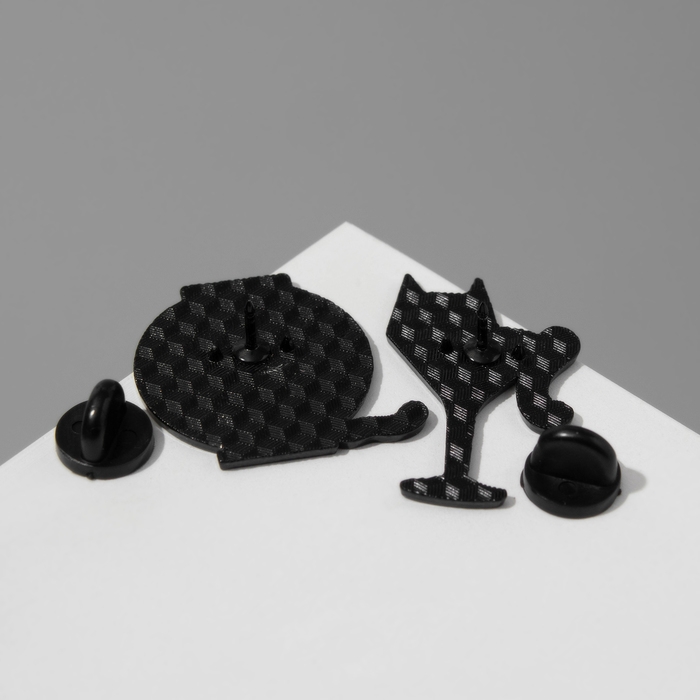 Набор значков (2шт) "Котики" таинственные, цвет чёрно-белый в чёрном металле