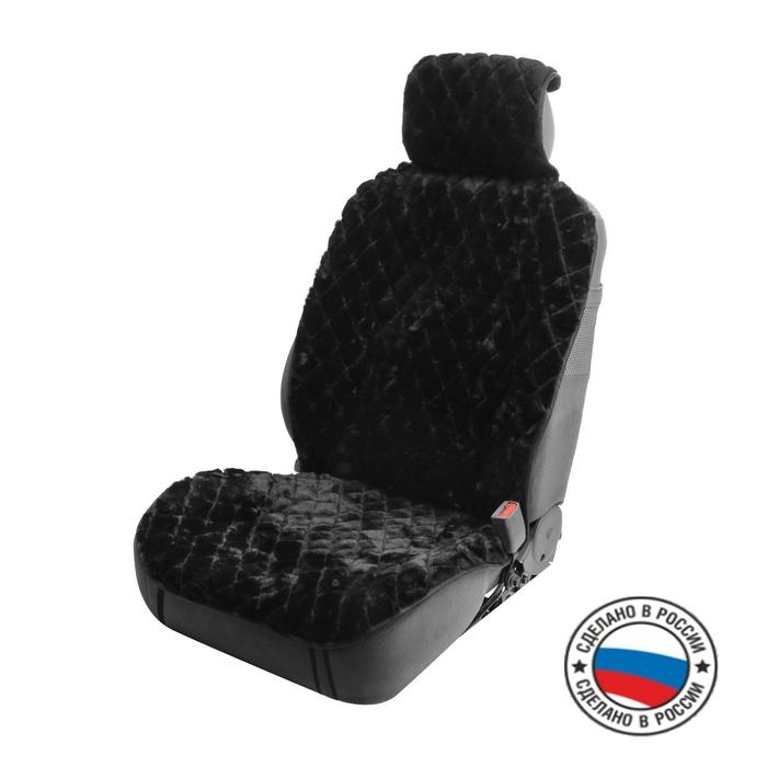 Накидка на переднее сиденье, искусственный мех, ромб, размер 55 х 135 см, черный