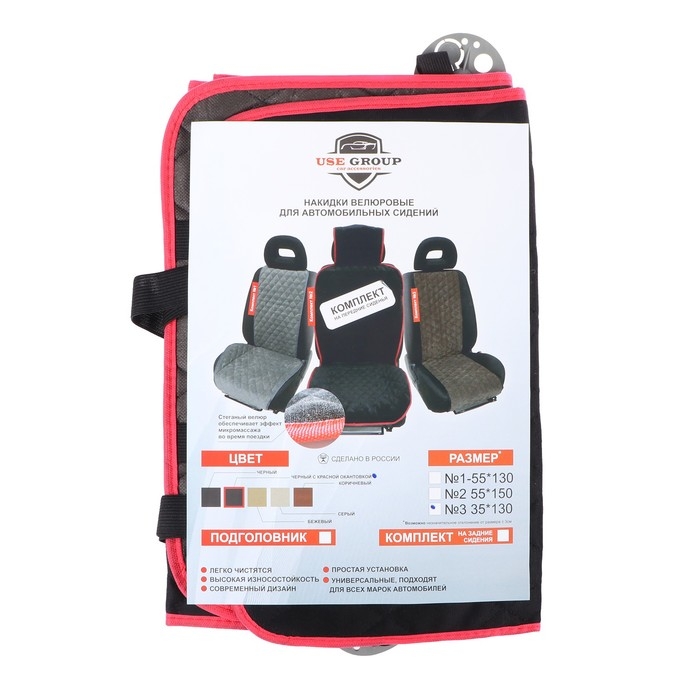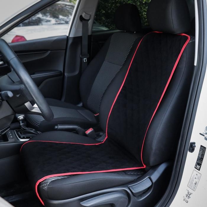 Накидка на переднее сиденье, велюр, размер 35 х 130 см, черный с красным кантом