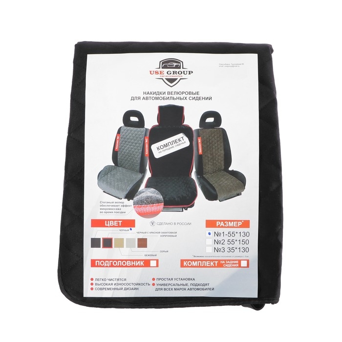 Накидка выполнена из высококачественного велюра, легко устанавливается, предохраняет обивку автомобильного салона от загрязнений, механических повреждений и потертостей. Легок в уходе.