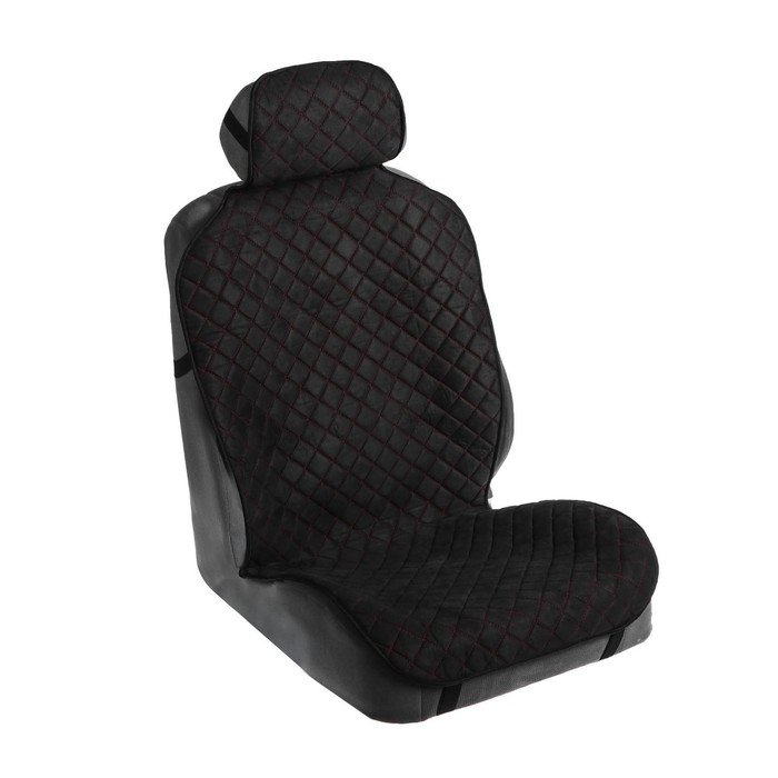 Накидка на сиденье "Алькантара" 140 х 52 см, черная с красной строчкой