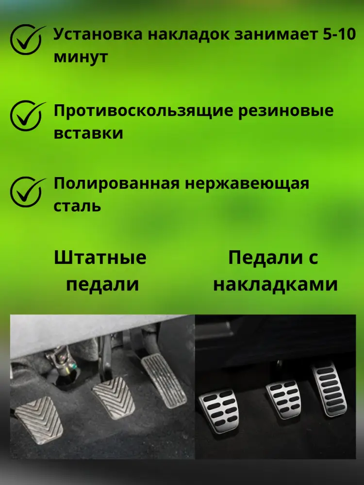 - Подходит для педалей сцепления, тормоза и газа (МКПП).