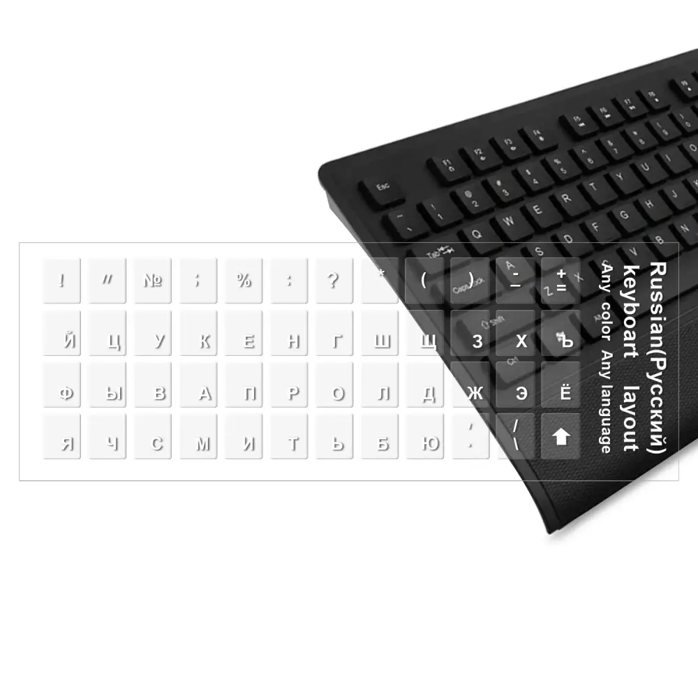 Наклейки на клавиатуру прозрачные белые буквы #1