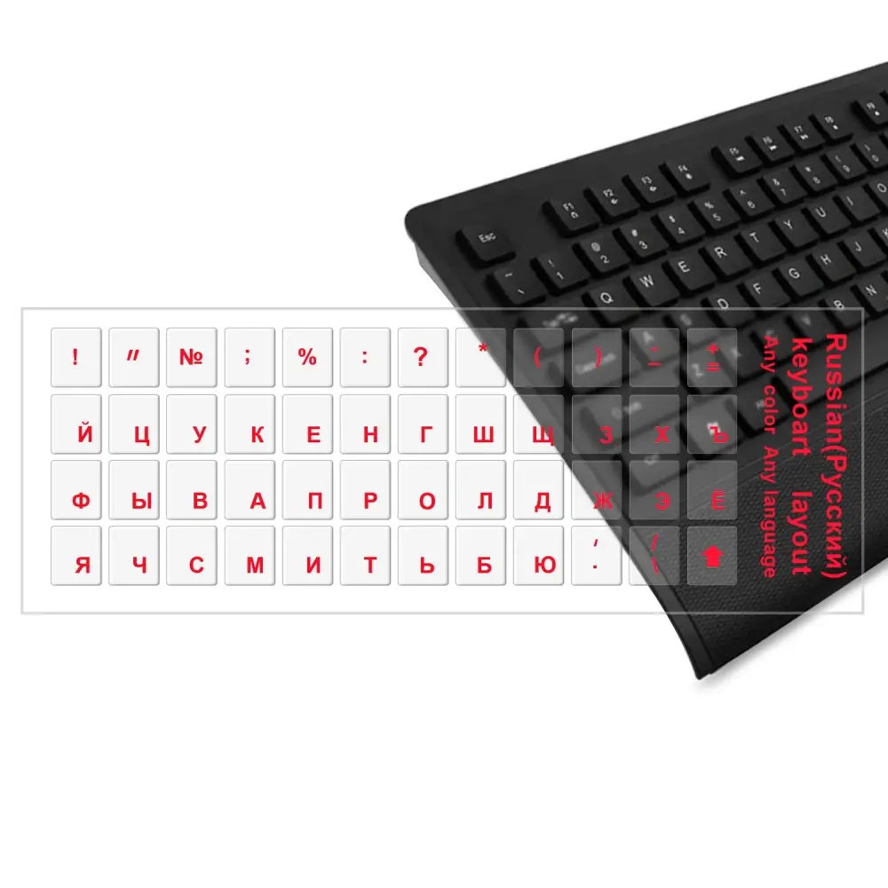 Наклейки на клавиатуру прозрачные красные буквы #2