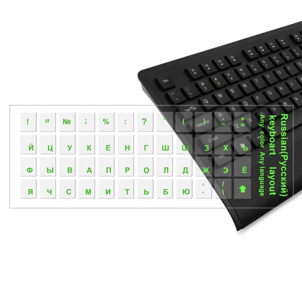 Наклейки на клавиатуру прозрачные зеленые буквы #3