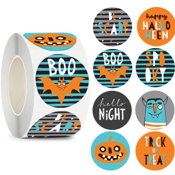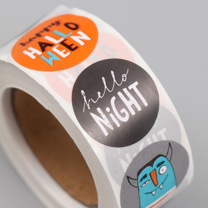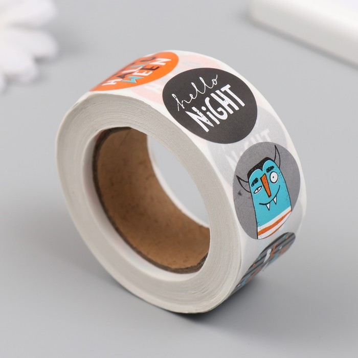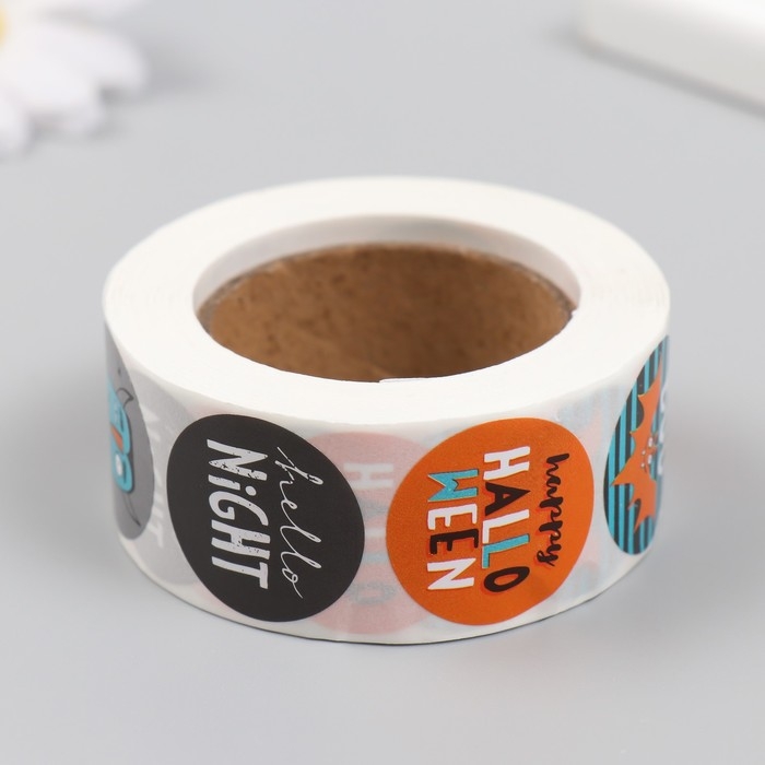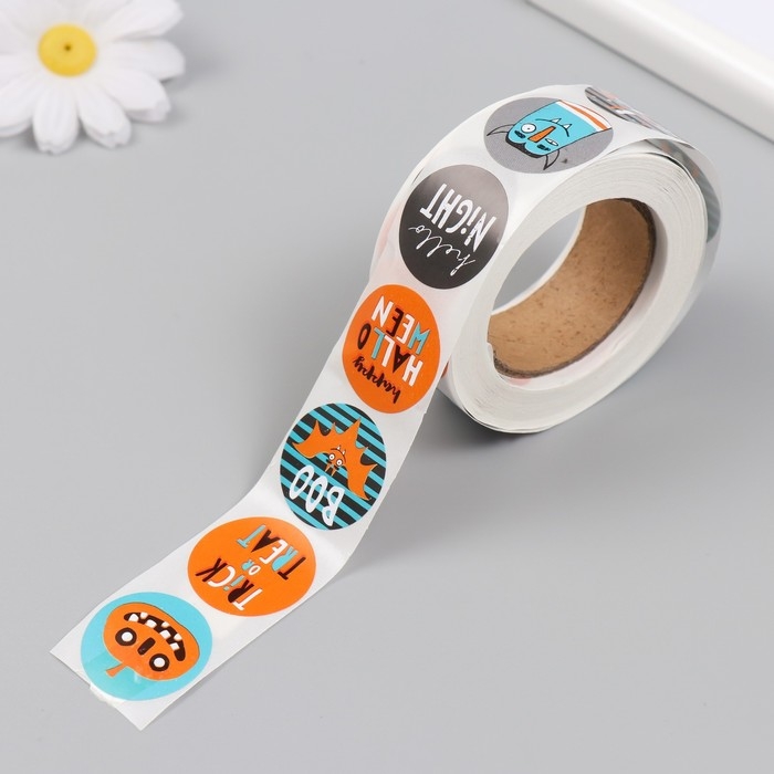 Наклейка бумага "Хэллоуин. Страшилки" d=2,5 см 500 шт в рулоне