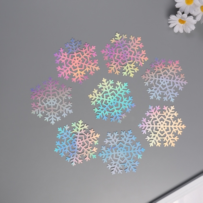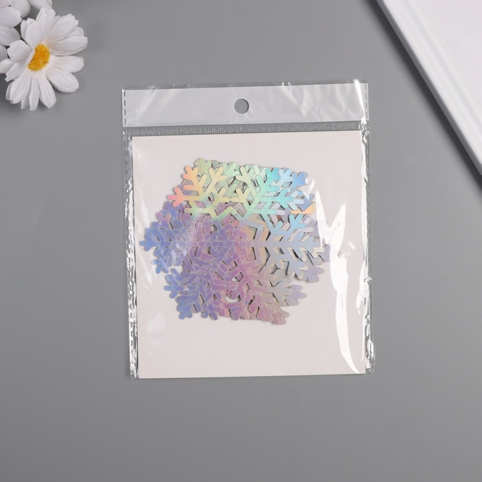 Наклейка бумага, пластик "Снежинки-льдинки" серебро переливы набор 8 шт 9,5х8,5 см