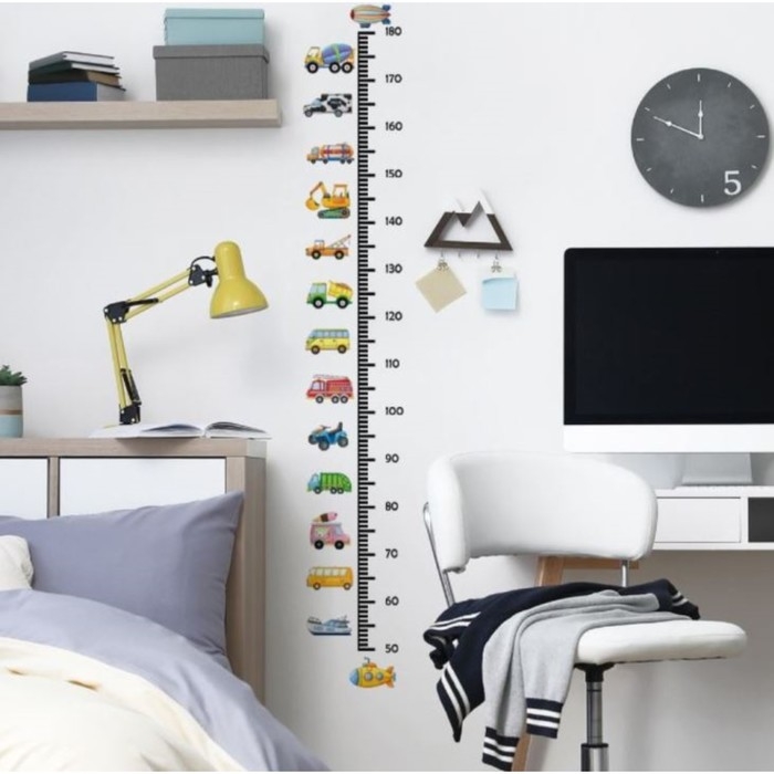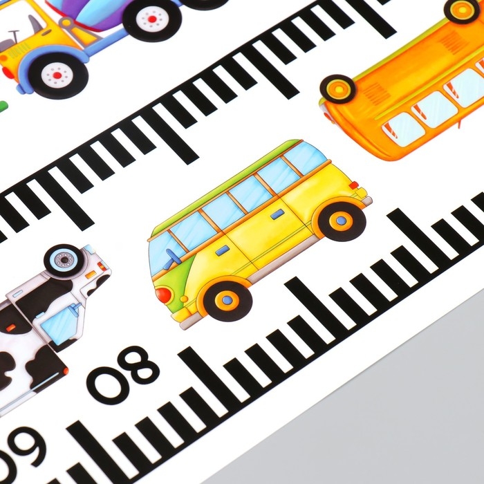 Наклейка пластик интерьерная цветная ростомер "Транспорт" набор 2 листа 15х60 см