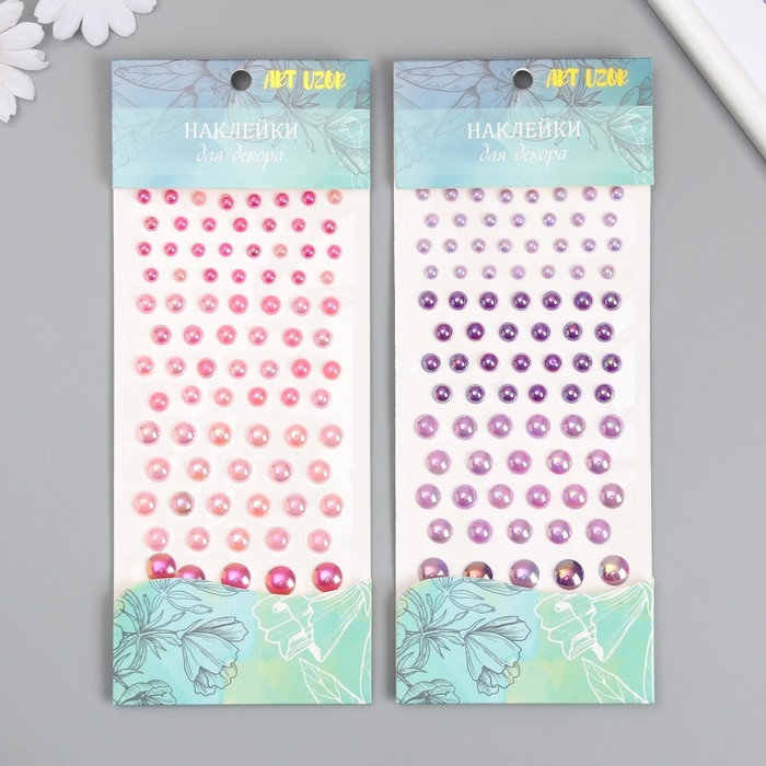 Наклейка пластик стразы "Полужемчужины разных размеров" перламутр МИКС 10х27 см