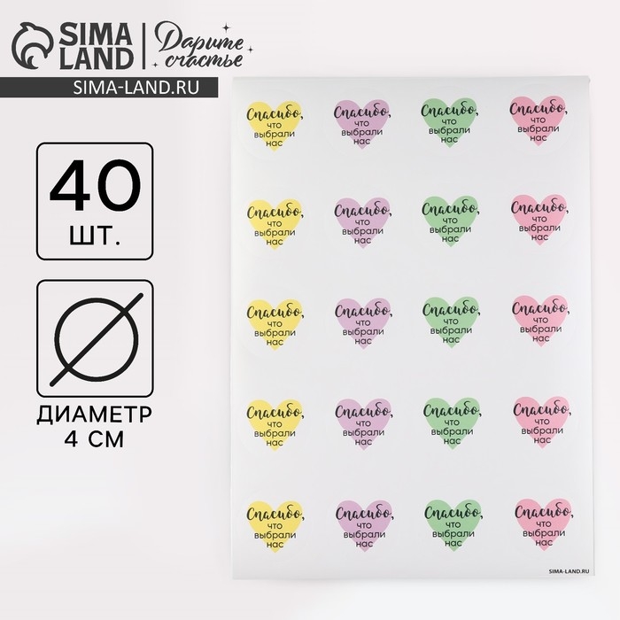 Наклейки для бизнеса «Спасибо, что выбрали нас», 40 шт, 4 х 4 см