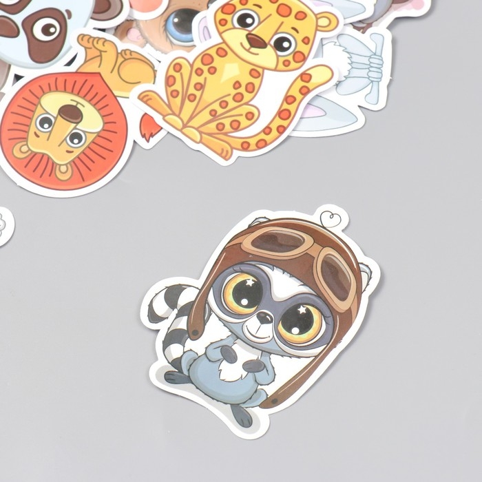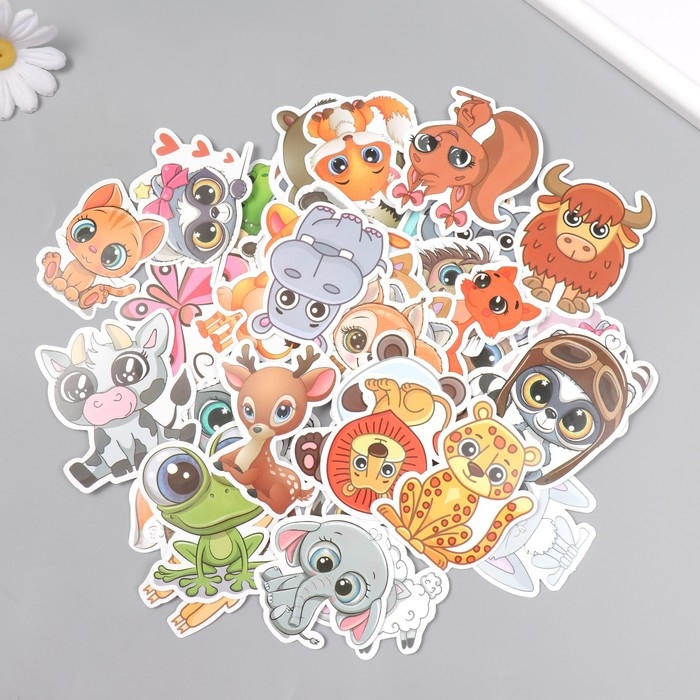Наклейки для творчества "Большеглазые зверята" набор 50 шт 4х8 см
