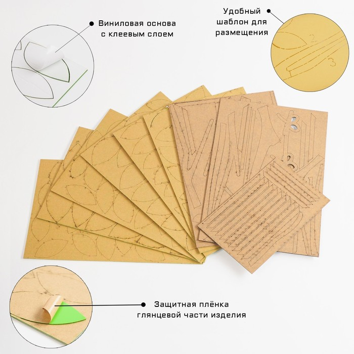 - Наклейка состоит их трёх слоев — виниловой основы с клеевым слоем, защитной подложки снизу и прозрачной плёнки сверху. Не снимайте защитную плёнку с глянцевой части изделия, пока не закончите работы.