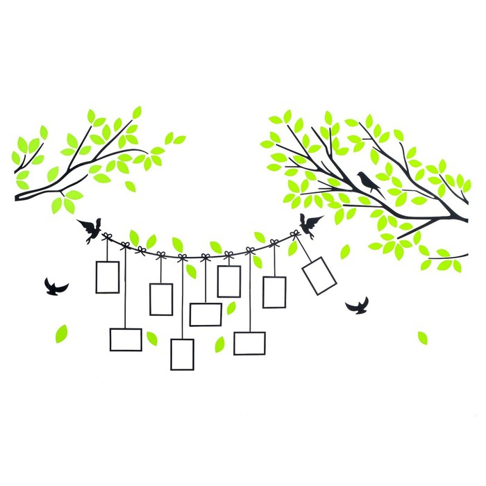 Наклейки интерьерные с фоторамками "Веточки", декор на стену, панно 115 х 200 см, 186 эл
