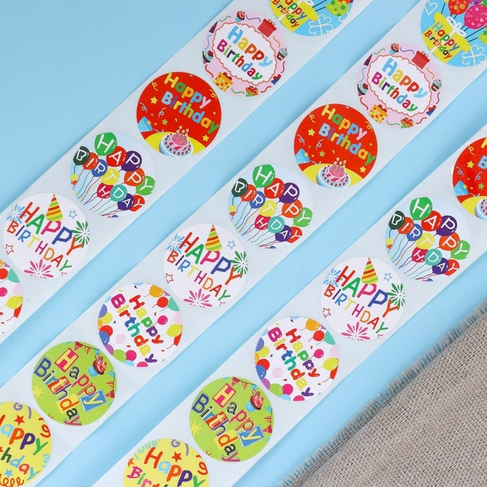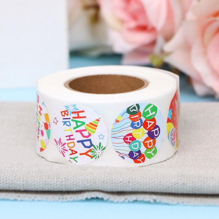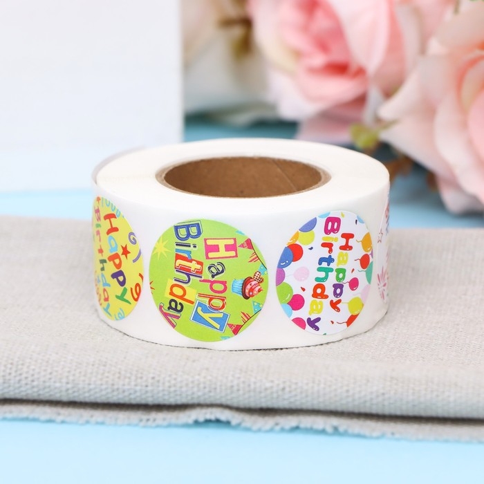 Наклейки в рулоне "С ДР!",500 шт,2,5 х 2,5 см