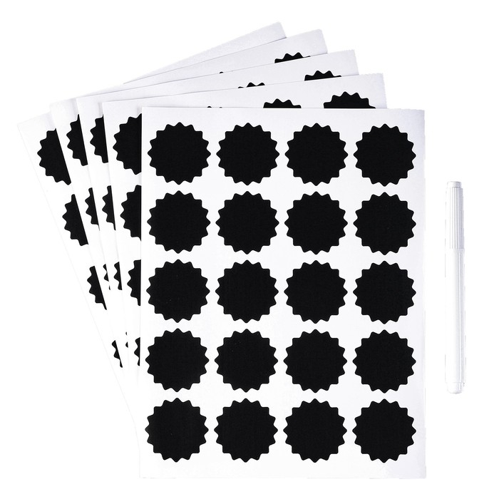 Наклейки водонепроницаемые, набор листов 5 шт., меловой маркер, диаметр 1 наклейки — 38 мм