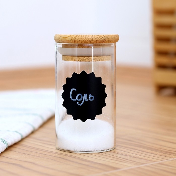 - Для организации пространства на кухне. Сортируйте контейнеры с крупой — просто наклейте на контейнер стикер и подпишите его маркером.