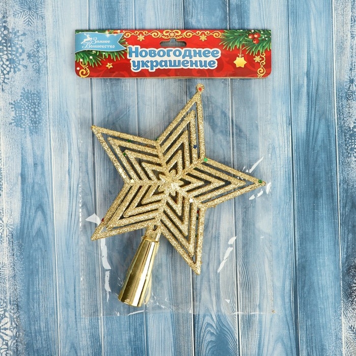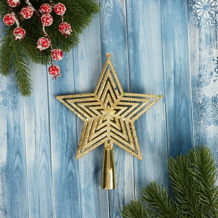Наконечник "Звезда" крупные блёстки сияние, 14х17 см, золото