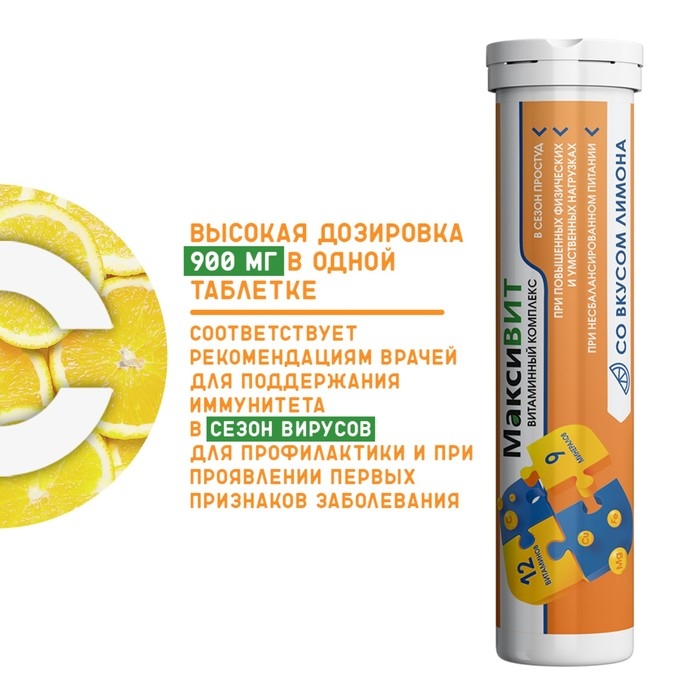 Напиток "Максивит" с комплексом витаминов со вкусом лимона, 10 таблеток по 3 г