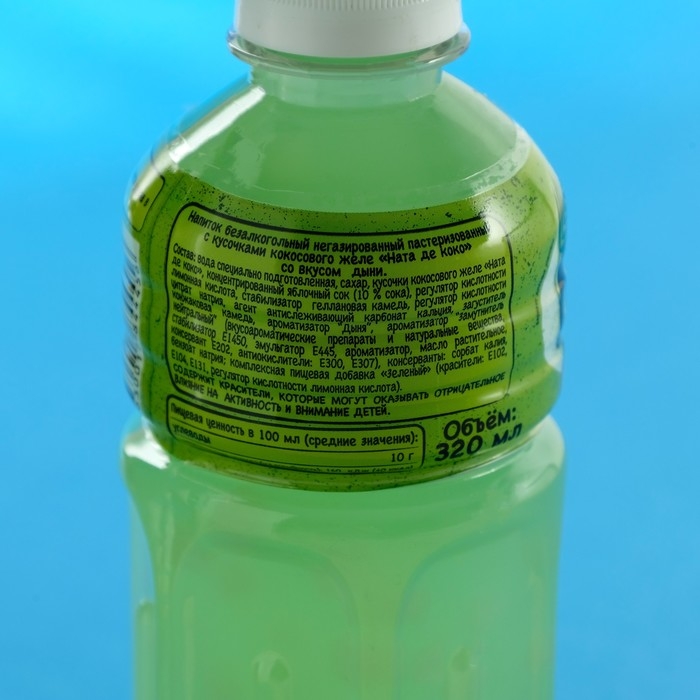 Безалкогольный, негазированный напиток со вкусом дыни и кусочками кокосового желе. Мармелл содержит кусочки кокосового желе Ната де Коко (Nata de coco)- натуральное желе с высоким содержанием клетчатки, полученное путем ферментации кокосовой воды. Напиток обладает нежным, в меру сладким вкусом и отлично утоляет жажду.