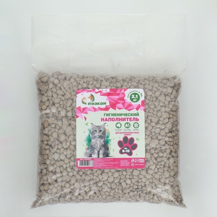 Наполнитель гигиенический "Пижон" , для длинношерстных кошек, 2,1 кг впитываемость до 4 л фр 6-10