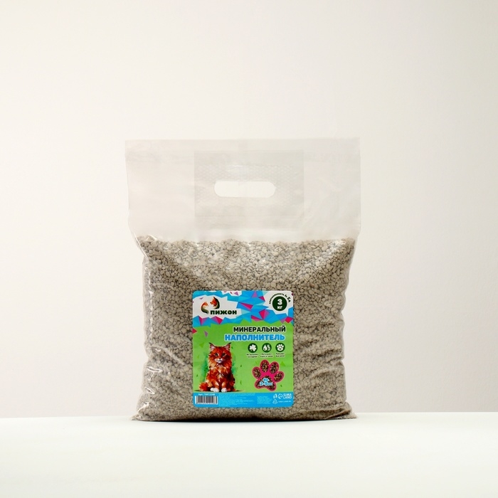 Наполнитель минеральный впитывающий "Пижон Premium", для длинношерстных кошек, 5 л