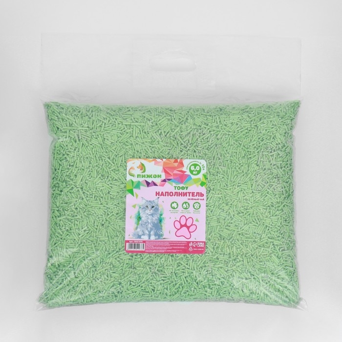Наполнитель тофу, "Пижон" зеленый чай 6 кг впитываемость до 15 л