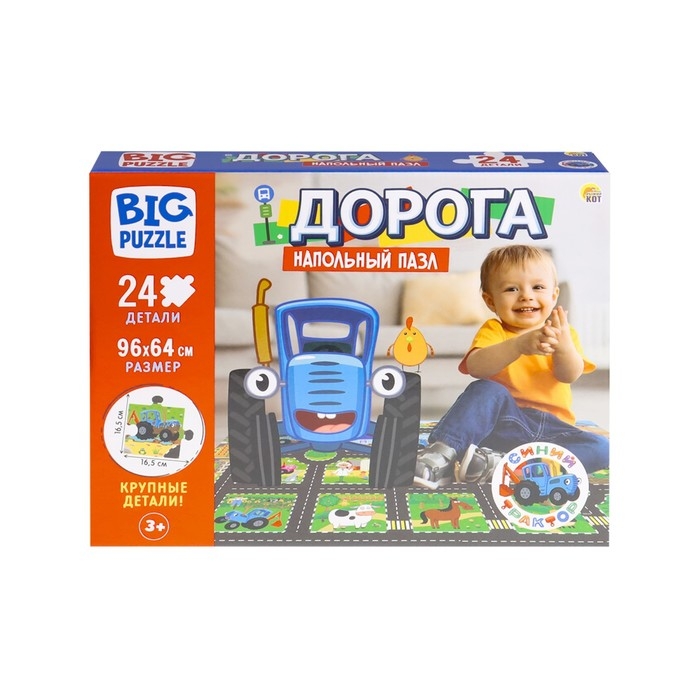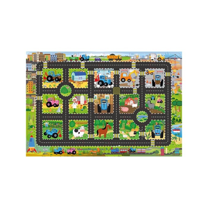 Напольные пазлы гиганты «Дорога», 24 элемента, Синий трактор