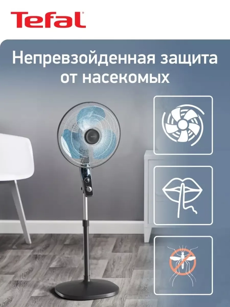 Мощный напольный вентилятор Tefal Essential + VF4420F2 не только быстро наполнит ваш дом свежестью, но и надежно защитит вас от насекомых.