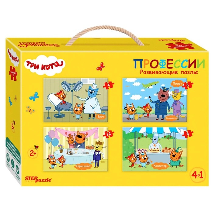 Напольный пазл 4 в 1 «Три кота», 4, 6, 8, 12 элементов