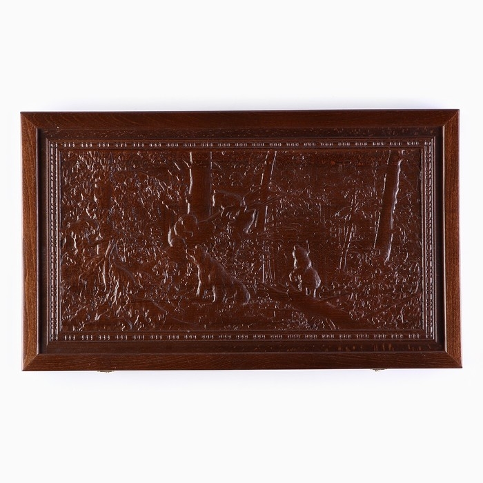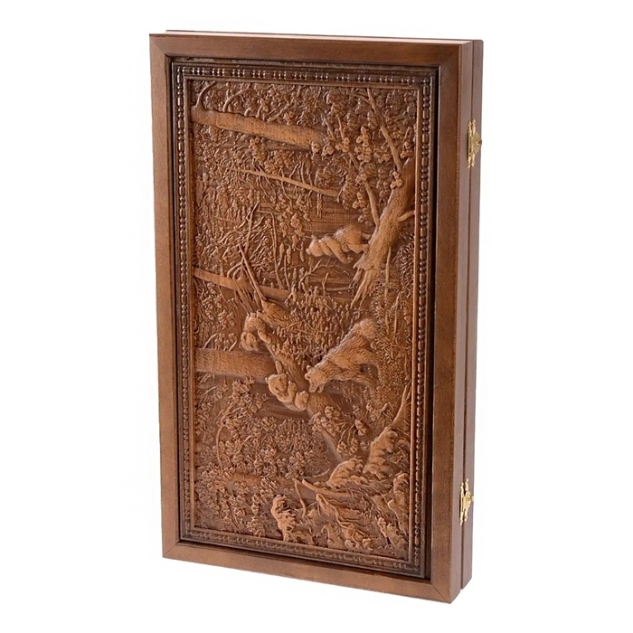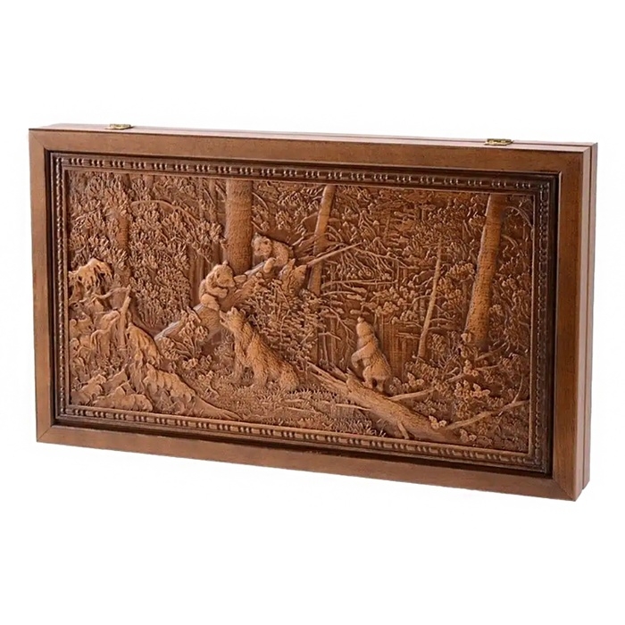 Нарды деревянные большие, резные "Мишки в лесу", доска из массива бука, патина, 50 х 58 см