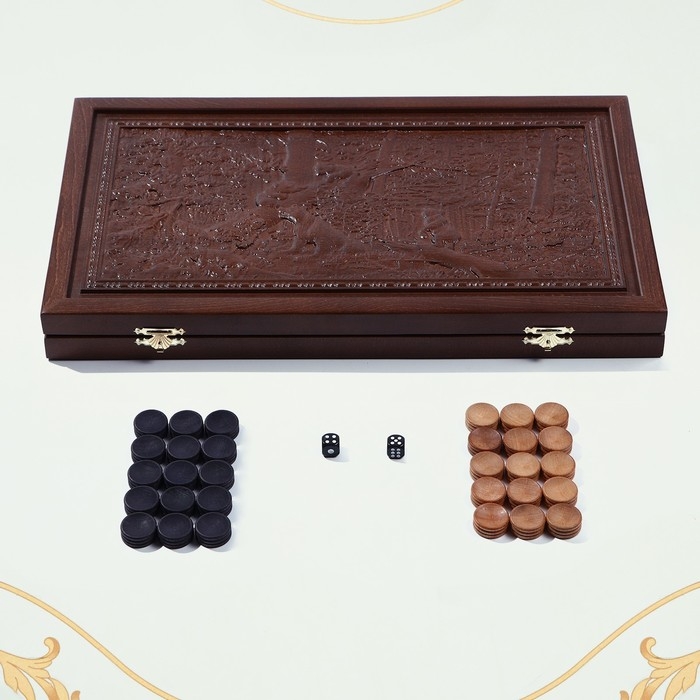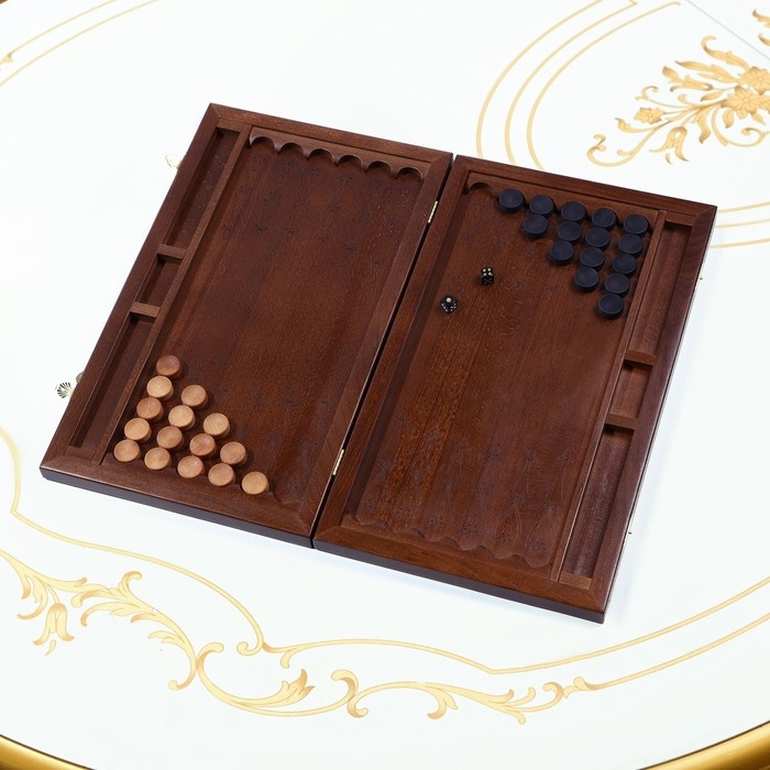 Набор сочетает в себе высокое качество, изысканный дизайн и превосходную игровую функциональность. Настольные игры, выполненные из дерева, всегда привлекали внимание своей неповторимой эстетикой и долговечностью. Изготовленные из массива бука, они обладают прочной структурой и долговечностью, что позволяет наслаждаться игрой в течение долгих лет. Одной из главных особенностей является резной орнамент, которые создаёт потрясающий визуальный эффект.
