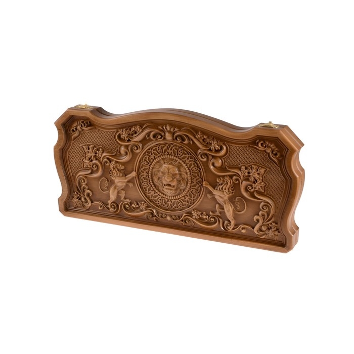 Деревянные нарды "Царь зверей" выделяются своей фигурной основой и резьбой. Их эстетика позволят им легко стать самостоятельным предметом интерьера. Для придания эффекта благородной нарды обрабатываются декоративной патиной.