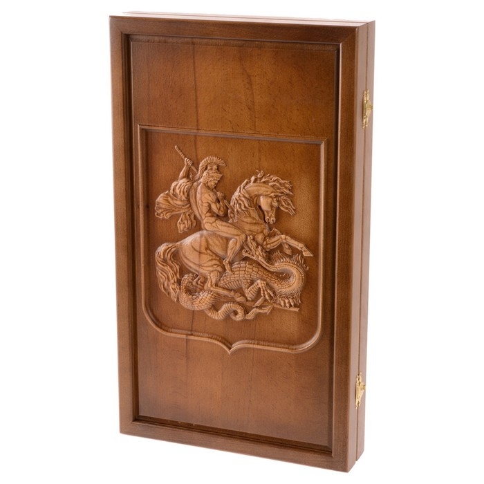 Нарды деревянные большие, резные, настольная игра "Георгий Победоносец", бук, 50 х 59 см
