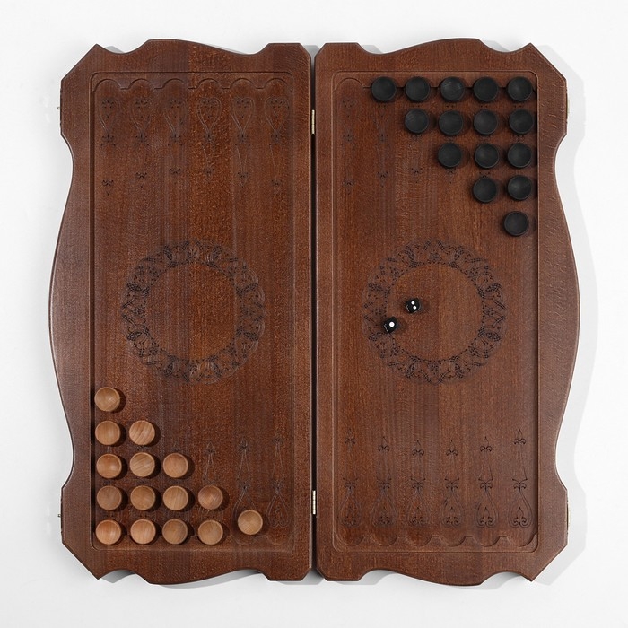Нарды деревянные большие, настольная игра "Узор", 40 х 40 см, с полем для игры в шашки