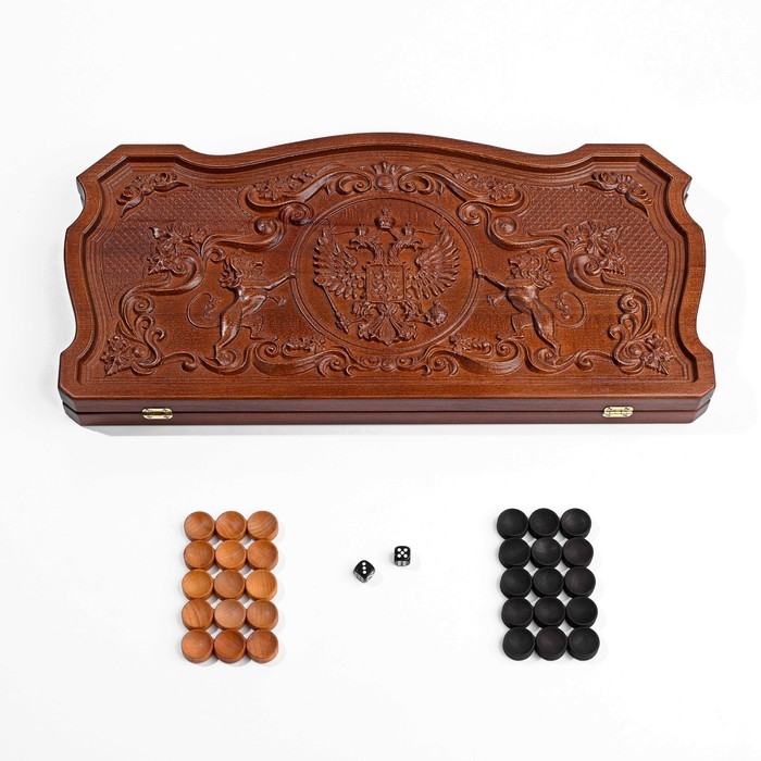 Нарды деревянные большие, с шашками "Герб России", настольная игра, 60 х 60 см