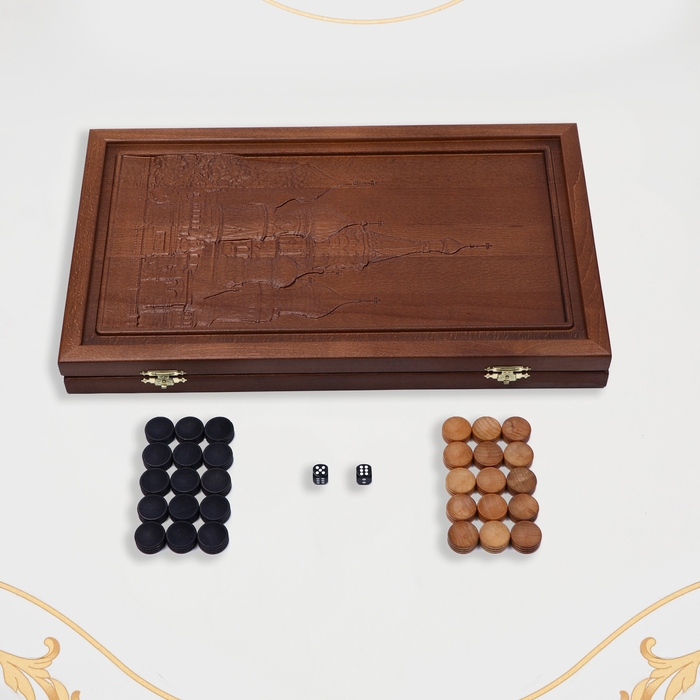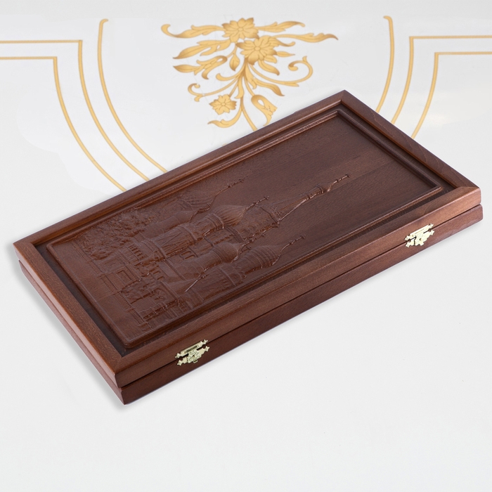 Нарды деревянные большие, резные, настольная игра "Москва", бук, патина, 50 x 59 см