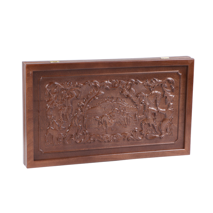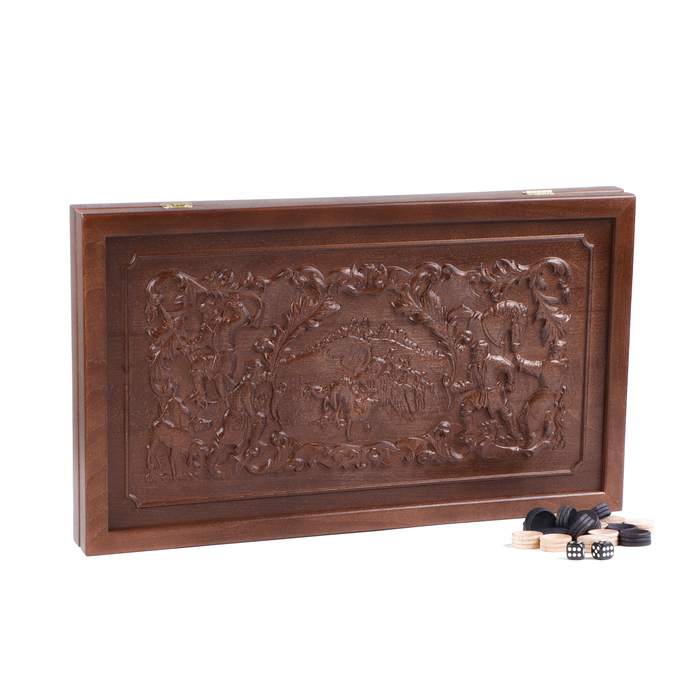 Нарды деревянные большие, резные, настольная игра "Соколиная охота", бук, 50 х 58 см