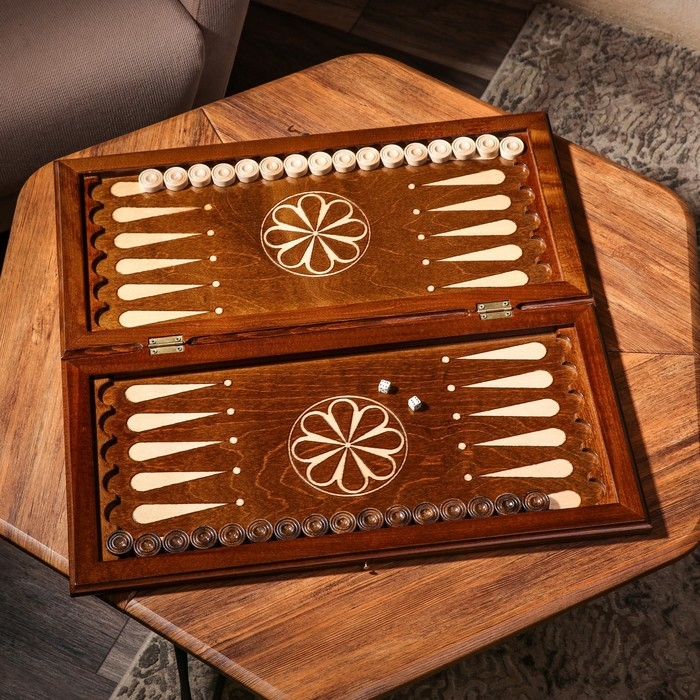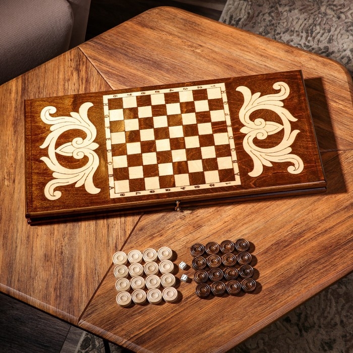 Нарды деревянные большие, настольная игра "Узор", 40 х 40 см, с полем для игры в шашки