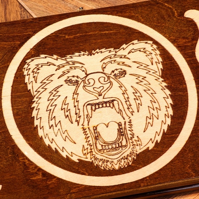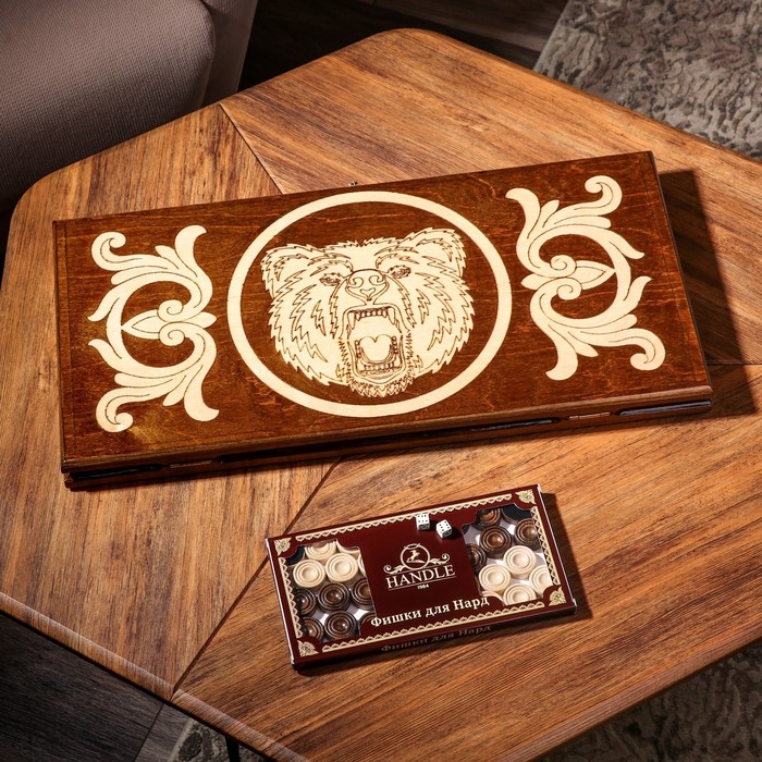 Нарды ручной работы "Медведь", 60х30 см, с шахматным полем, массив ореха, Армения