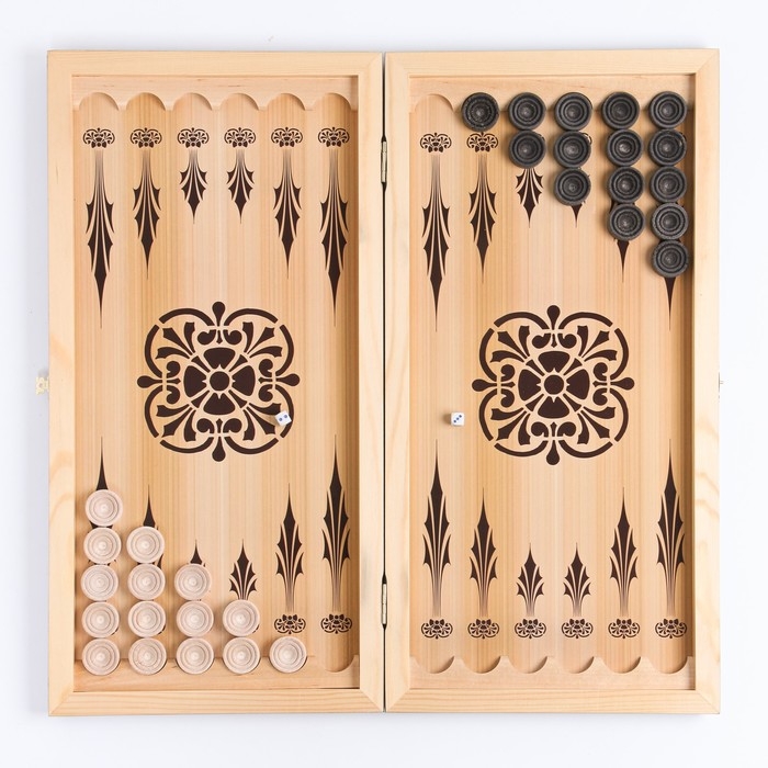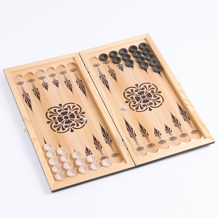 Нарды деревянные большие, настольная игра "Узор", 40 х 40 см, с полем для игры в шашки