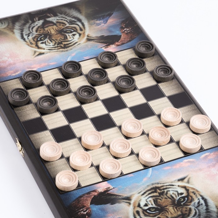 Нарды "Тигр и орел", деревянная доска 50 x 50 см, с полем для игры в шашки