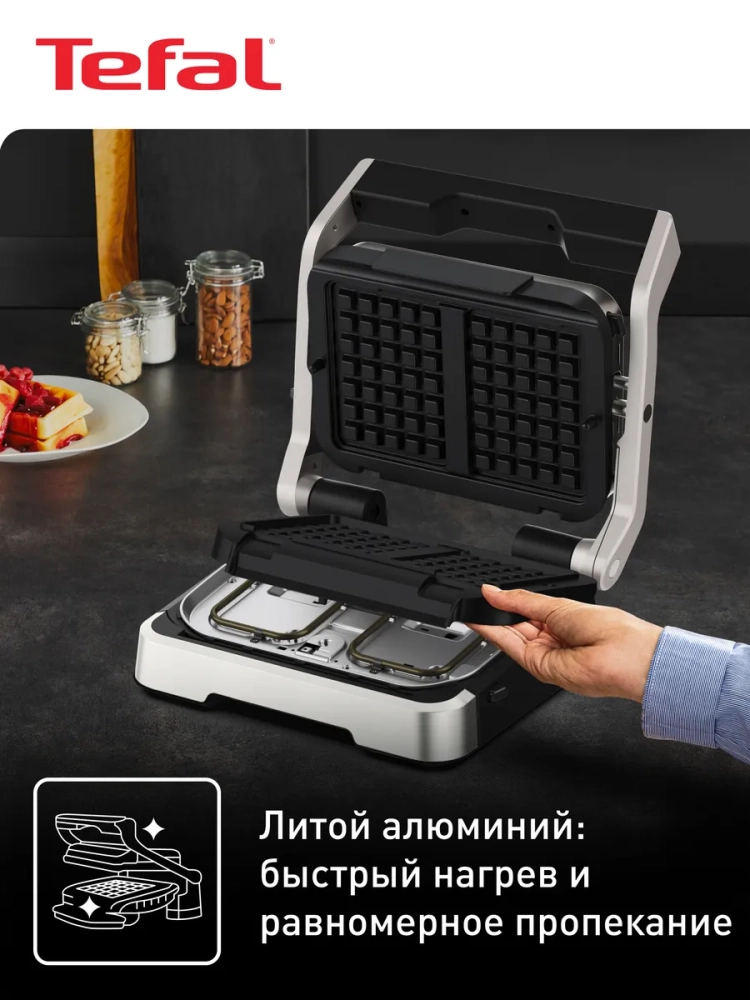 С насадкой Tefal Optigrill XA730810 ваши вафли будут неотразимо вкусными, с хрустящей корочкой и идеальной мягкостью внутри!