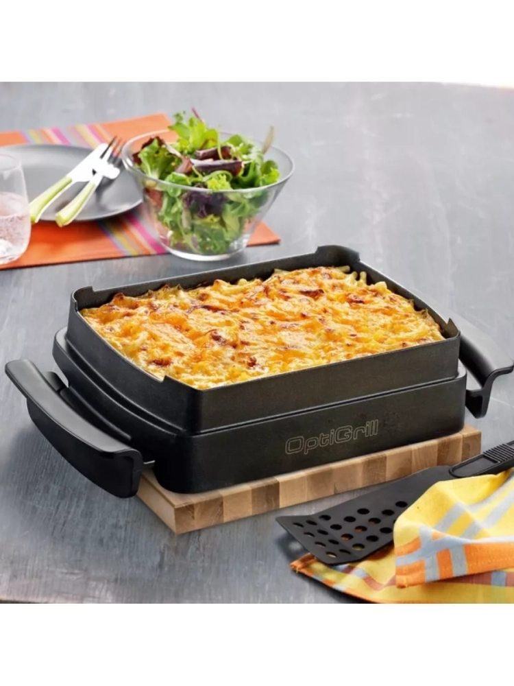 Превратите ваш OptiGrill в универсальное кулинарное устройство. Аксессуар позволяет использовать ваш OptiGrill для выпечки, разморозки, подогрева и обжаривания, расширяя ассортимент блюд, которые вы можете приготовить. В отличие от традиционной духовки, гриль с насадкой не требует предварительного разогрева, что экономит ваше время. Термоизолированные ручки обеспечивают безопасное обращение и возможность подавать готовую еду прямо на стол, не опасаясь ожогов.