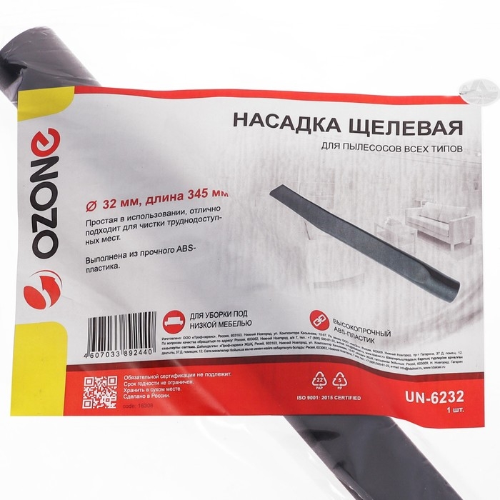 Насадка для пылесоса UN-6232 Ozone представляет собой щелевую насадку, предназначенную для уборки в труднодоступных местах. Она имеет длину 345 мм и подходит для трубки диаметром 32 мм.