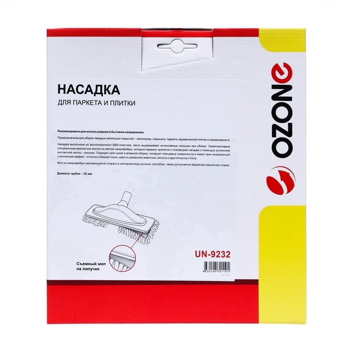 Насадка для пылесоса UN-9232 Ozone для паркета и плитки с микрофиброй, под трубку 32 мм