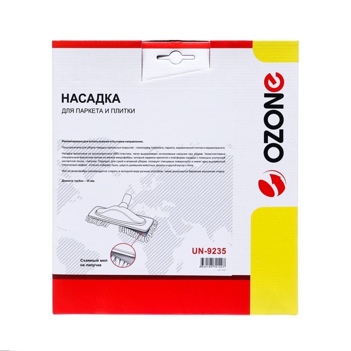 Насадка для пылесоса UN-9235 Ozone является незаменимым инструментом для уборки паркета и плитки. Это инновационное устройство оснащено специальной микрофиброй, которая позволяет не только эффективно удалять грязь и пыль с поверхности, но и придавать ей естественный блеск. Дизайн насадки продуман до мелочей: она удобно крепится к трубке диаметром 35 мм, что обеспечивает надежность и стабильность во время уборки.